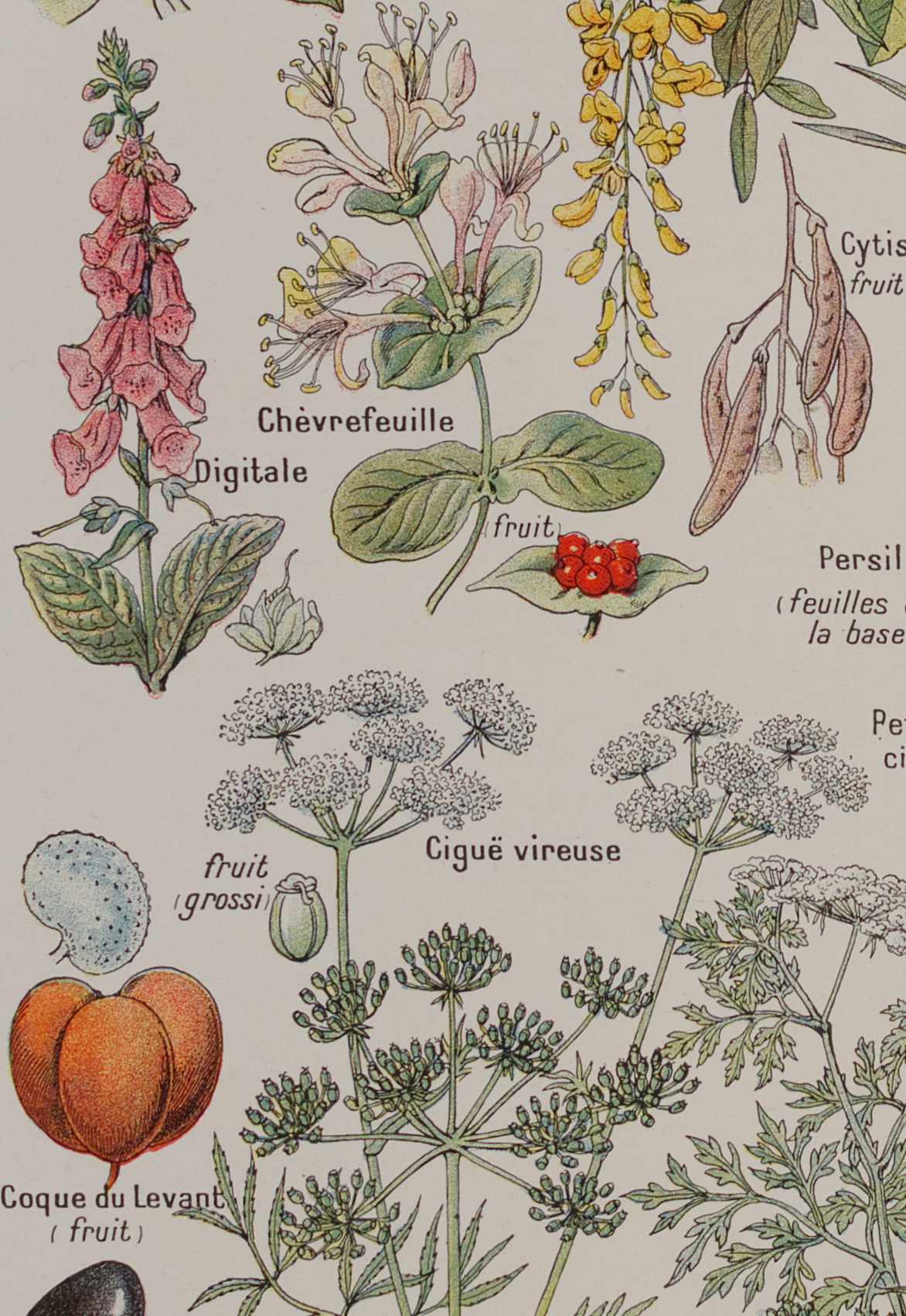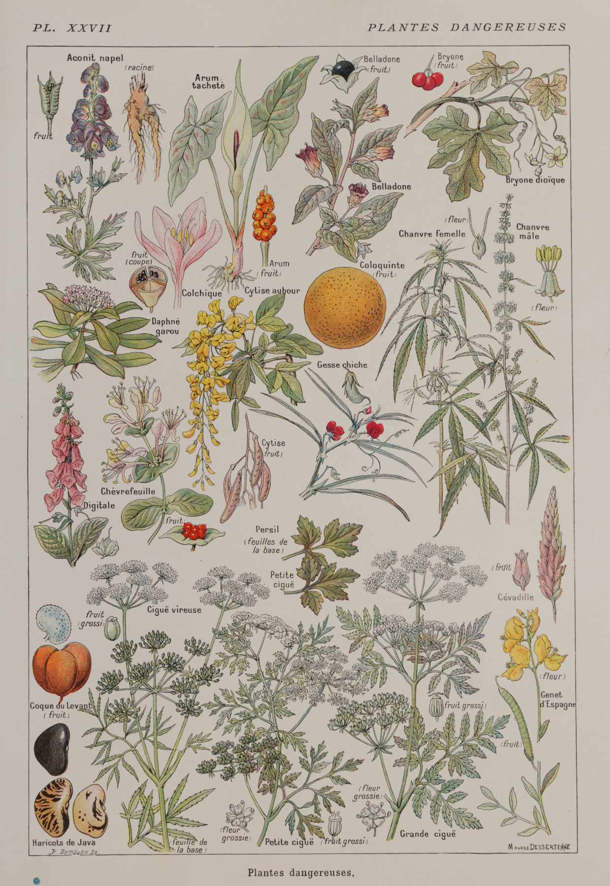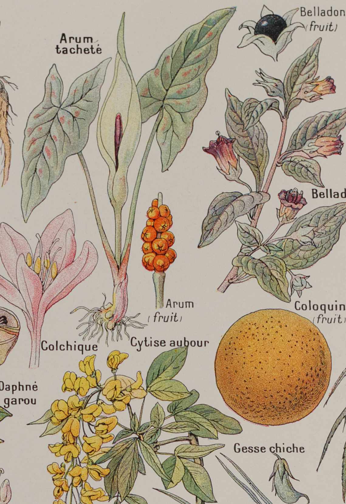 Planche botanique d’époque « Plantes dangereuses, arum » de 1924, décoration vintage authentique