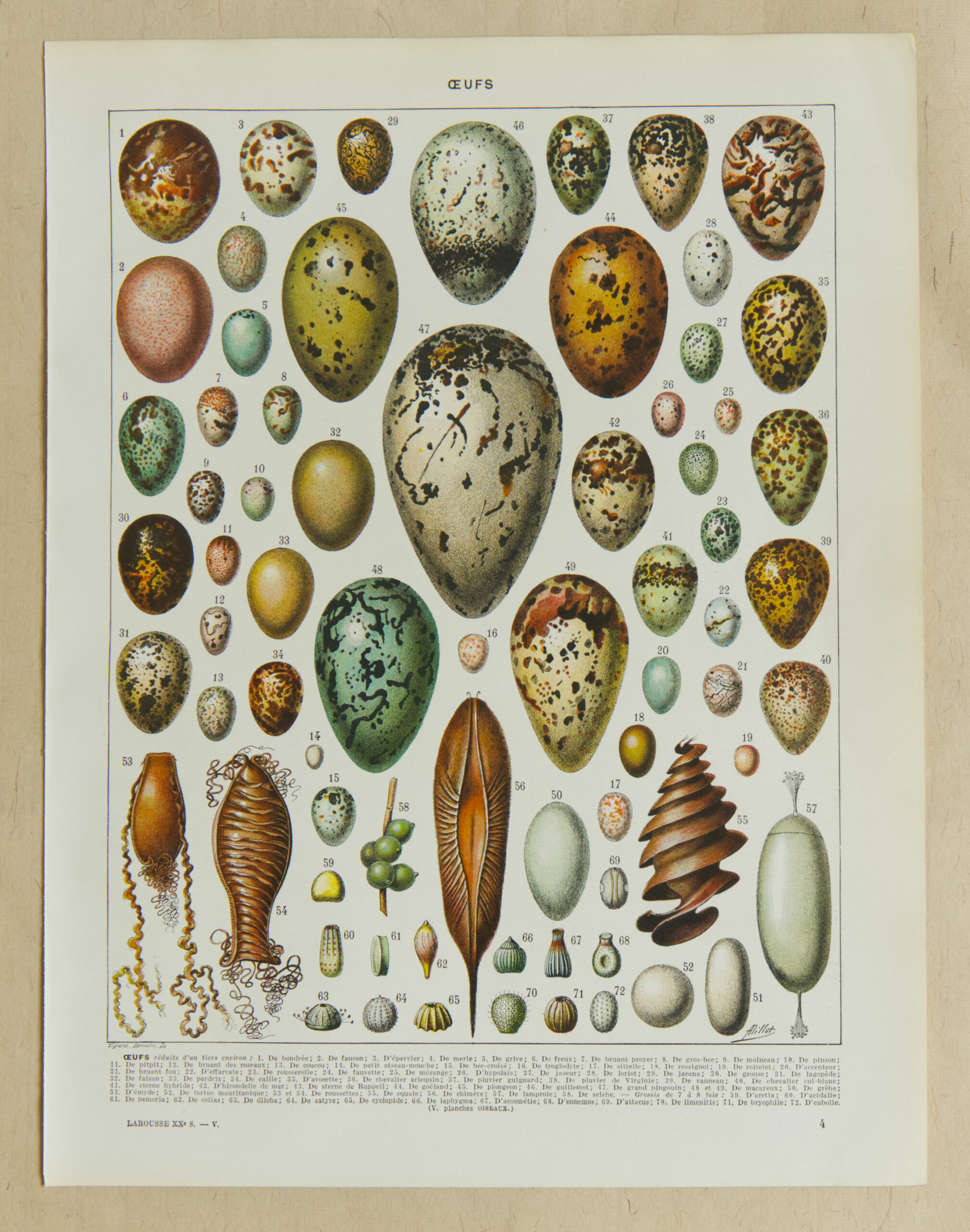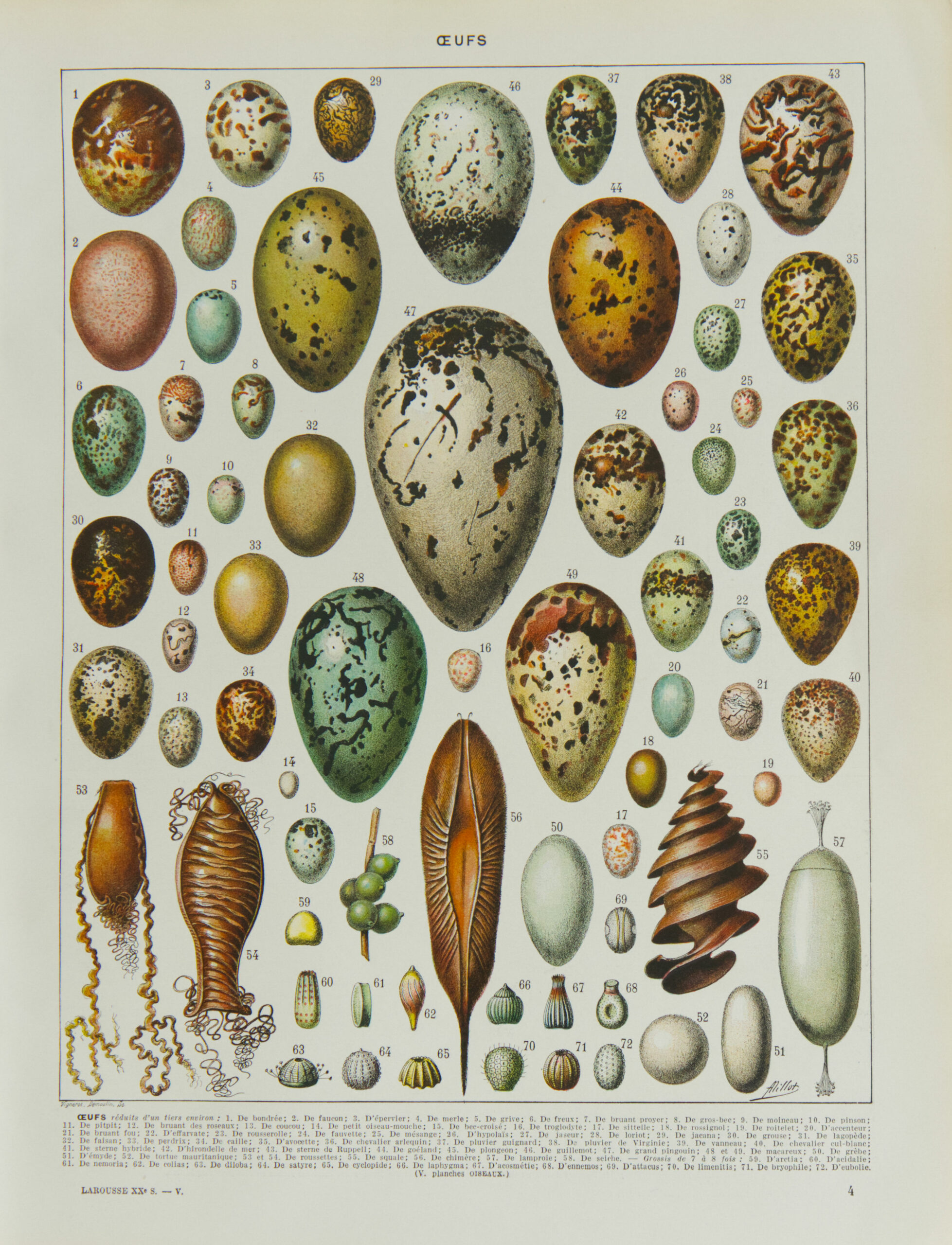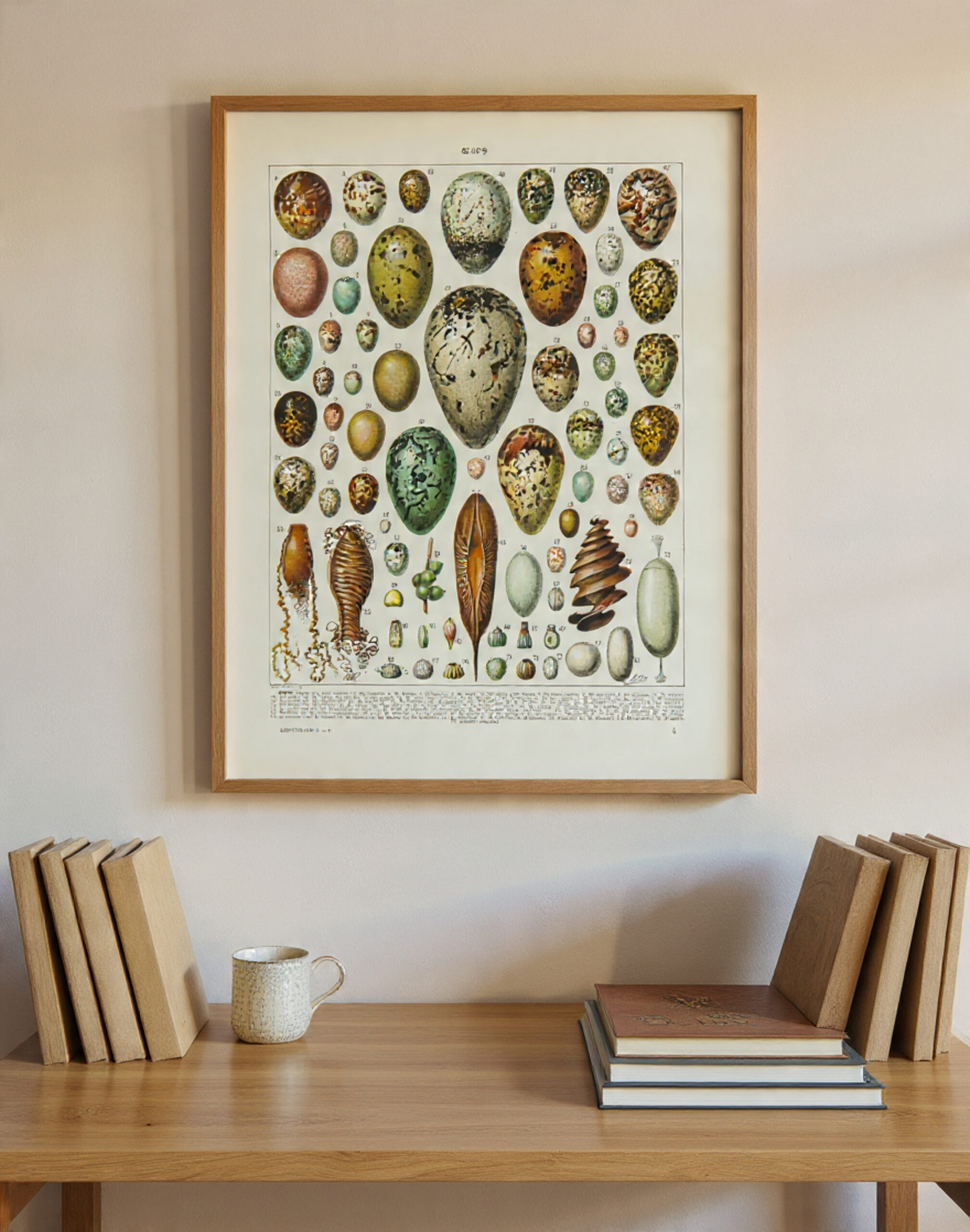 Découvrez une magnifique planche recto-verso illustrée originale de 1932. Au recto en couleur: « Diversité des Œufs »: cette planche présente une collection de 72 illustrations d’œufs de différentes espèces d’oiseaux et d’autres animaux. La légende en bas de la planche décrit chaque œuf en français, offrant une ressource éducative précieuse pour comprendre la diversité des œufs…
