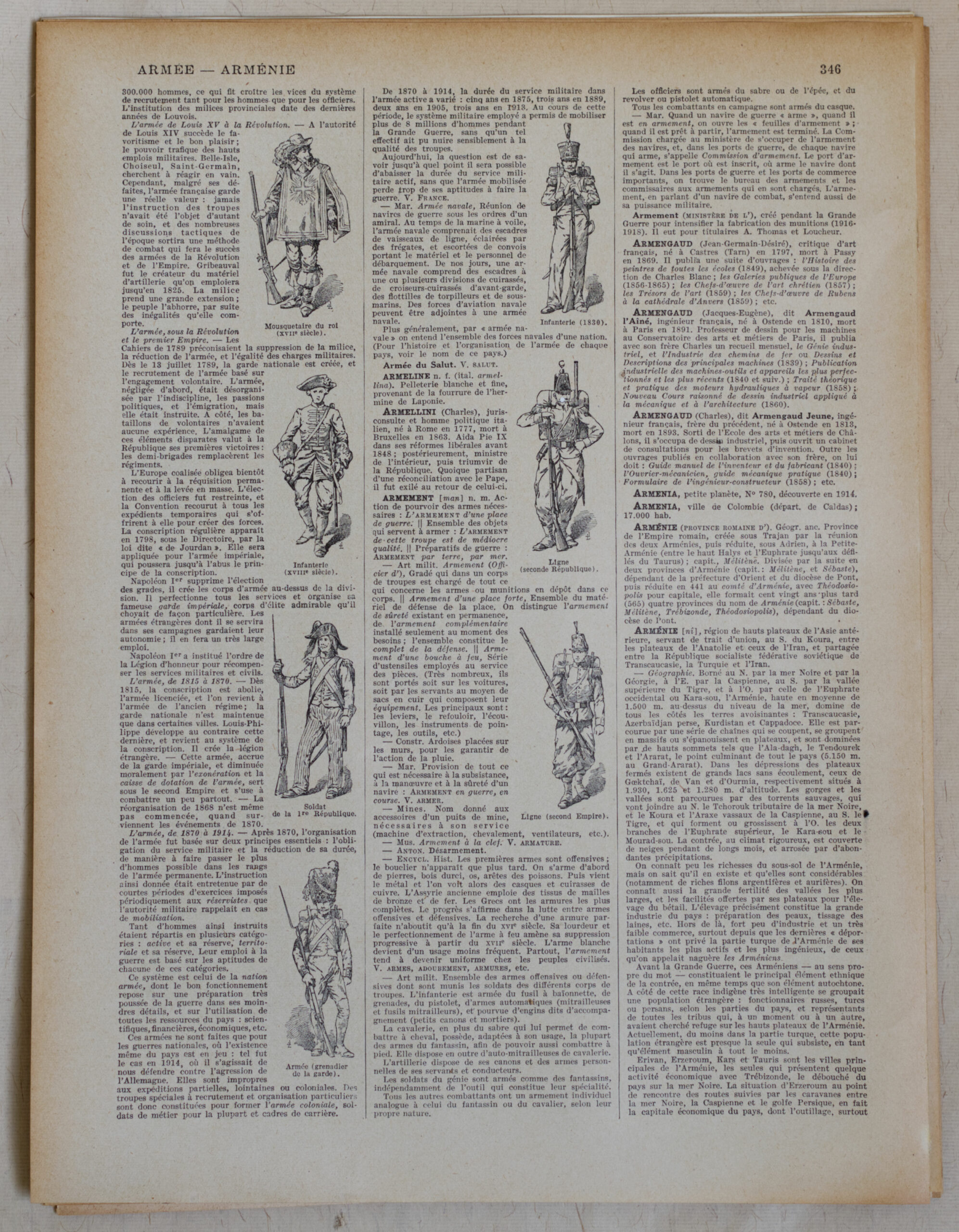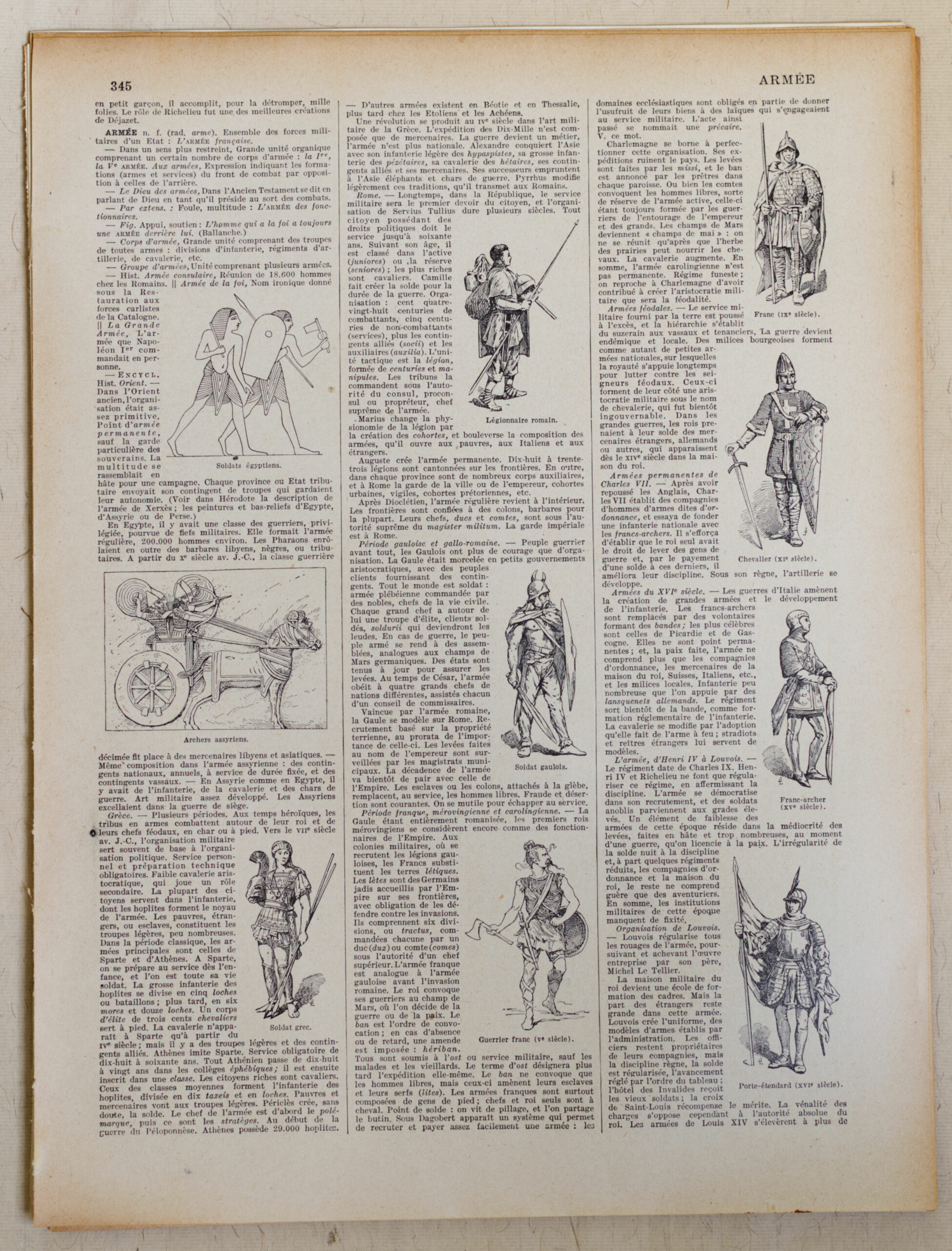 Cette partie est composée de textes et illustrations détaillant l’évolution des armées et des armements à travers les siècles :