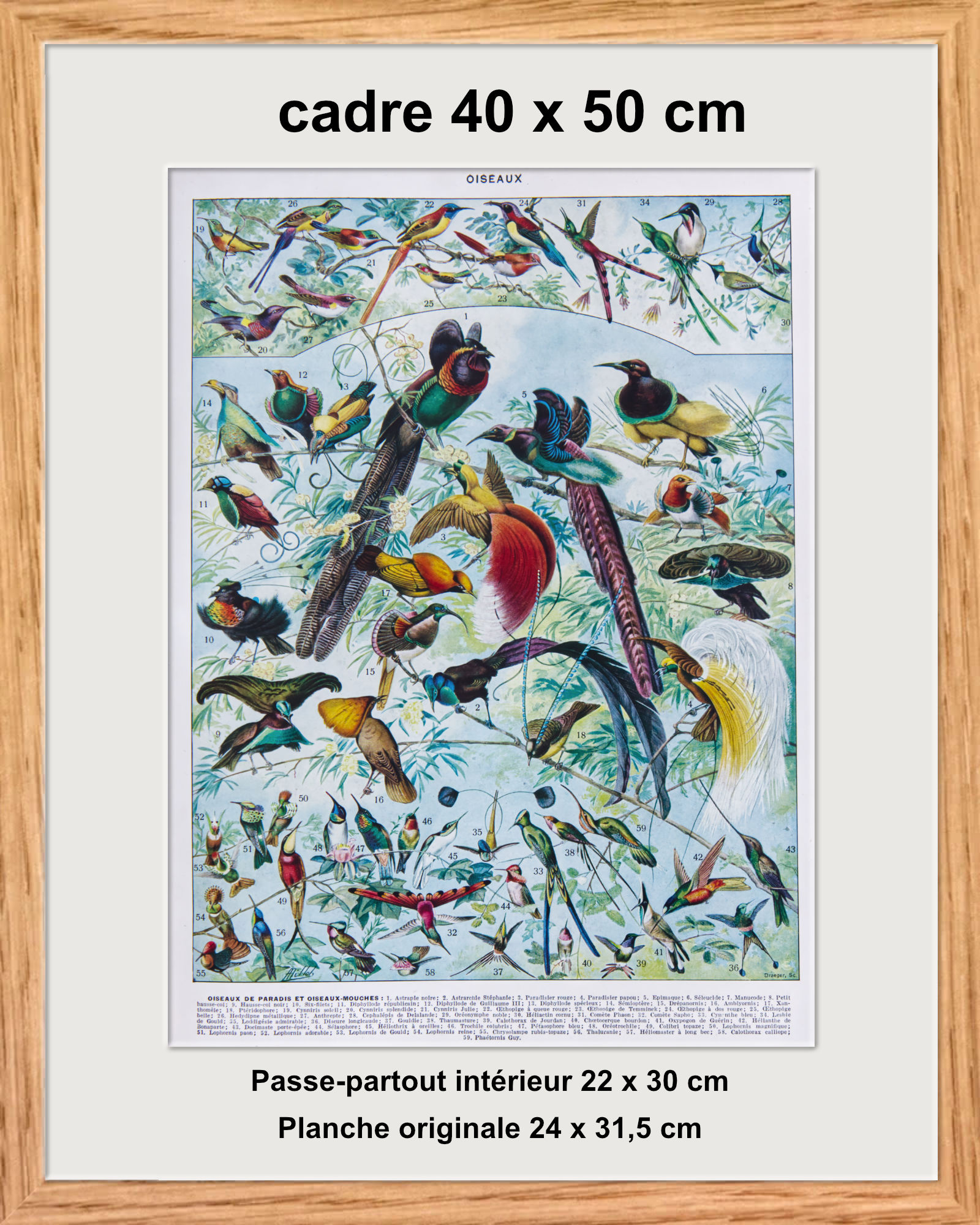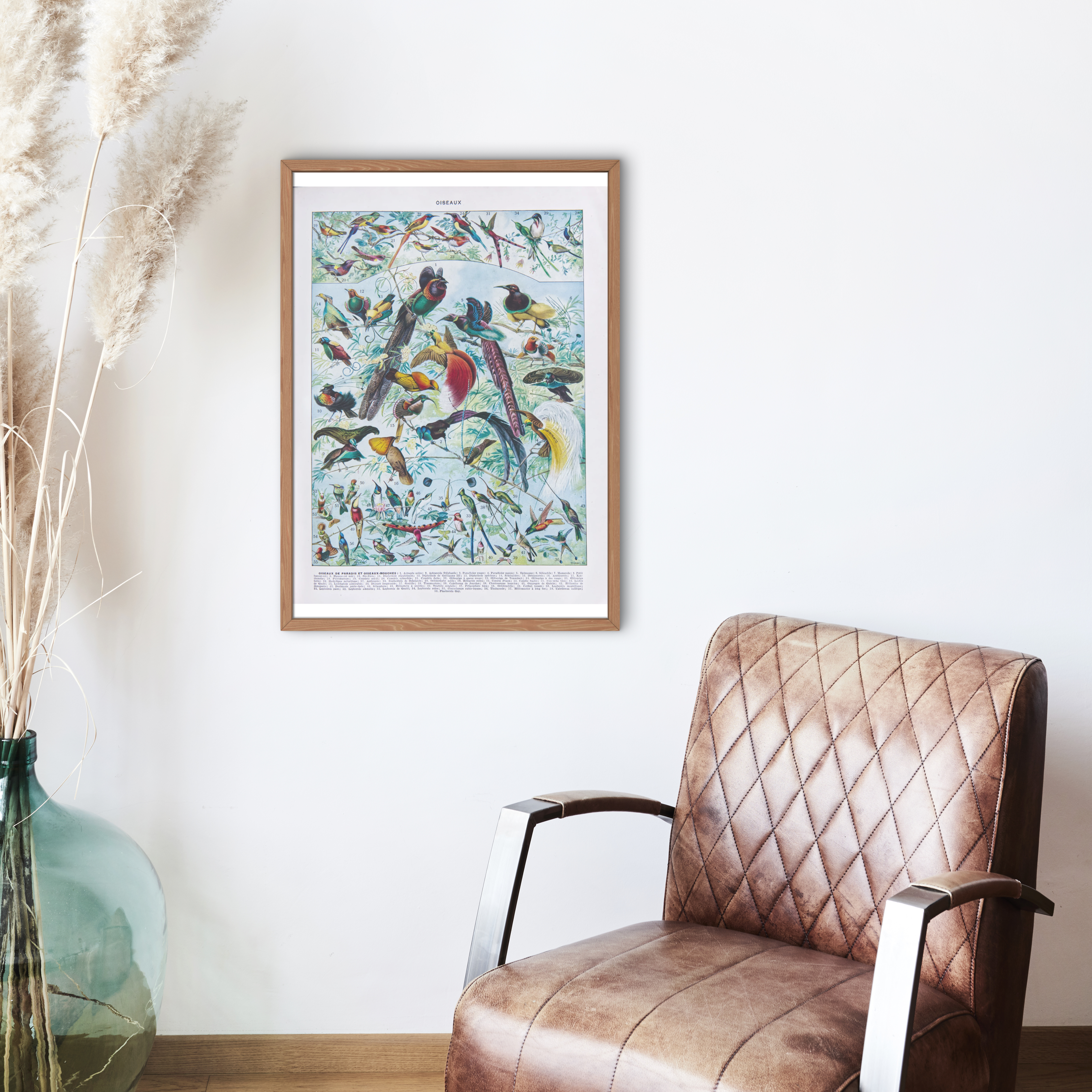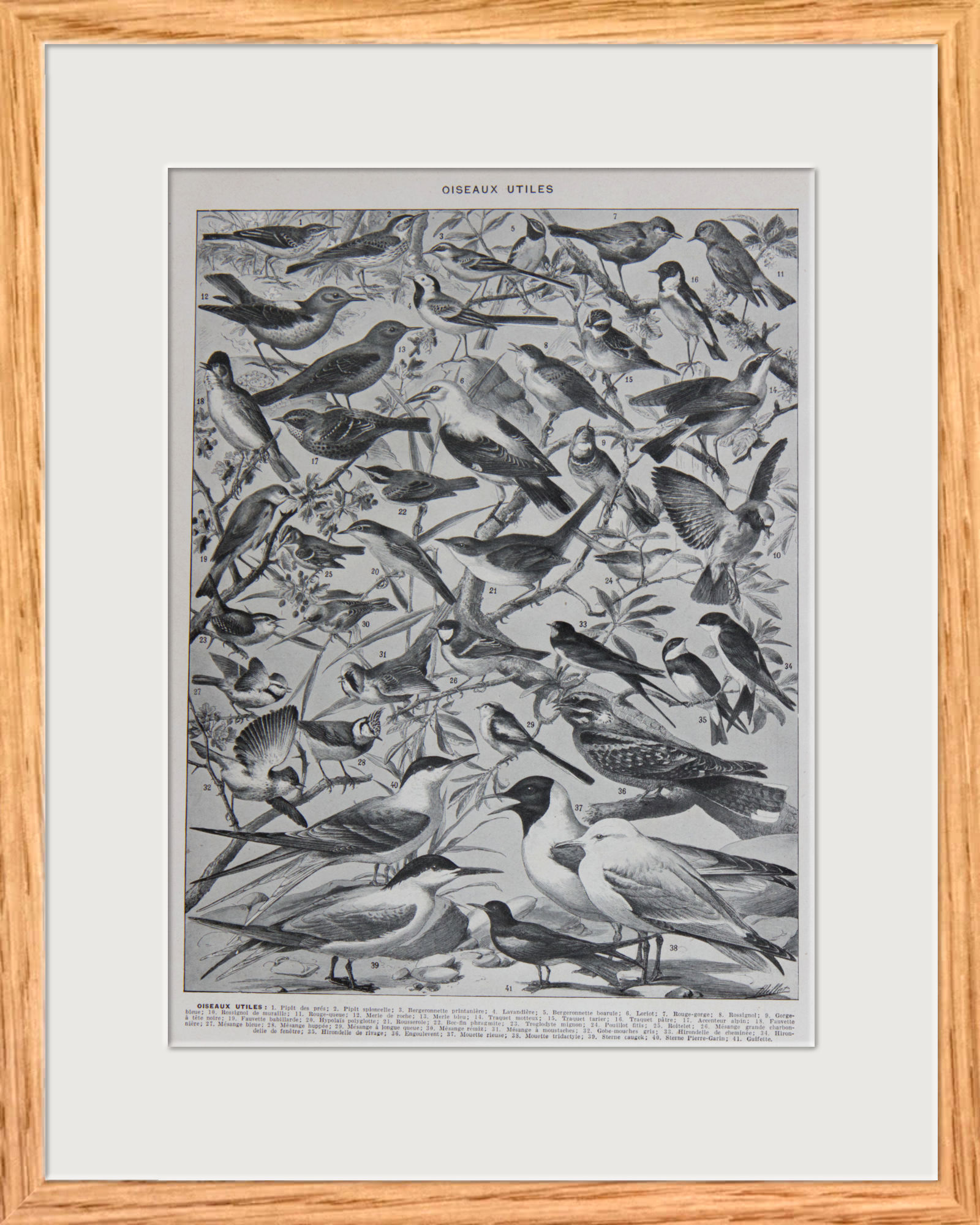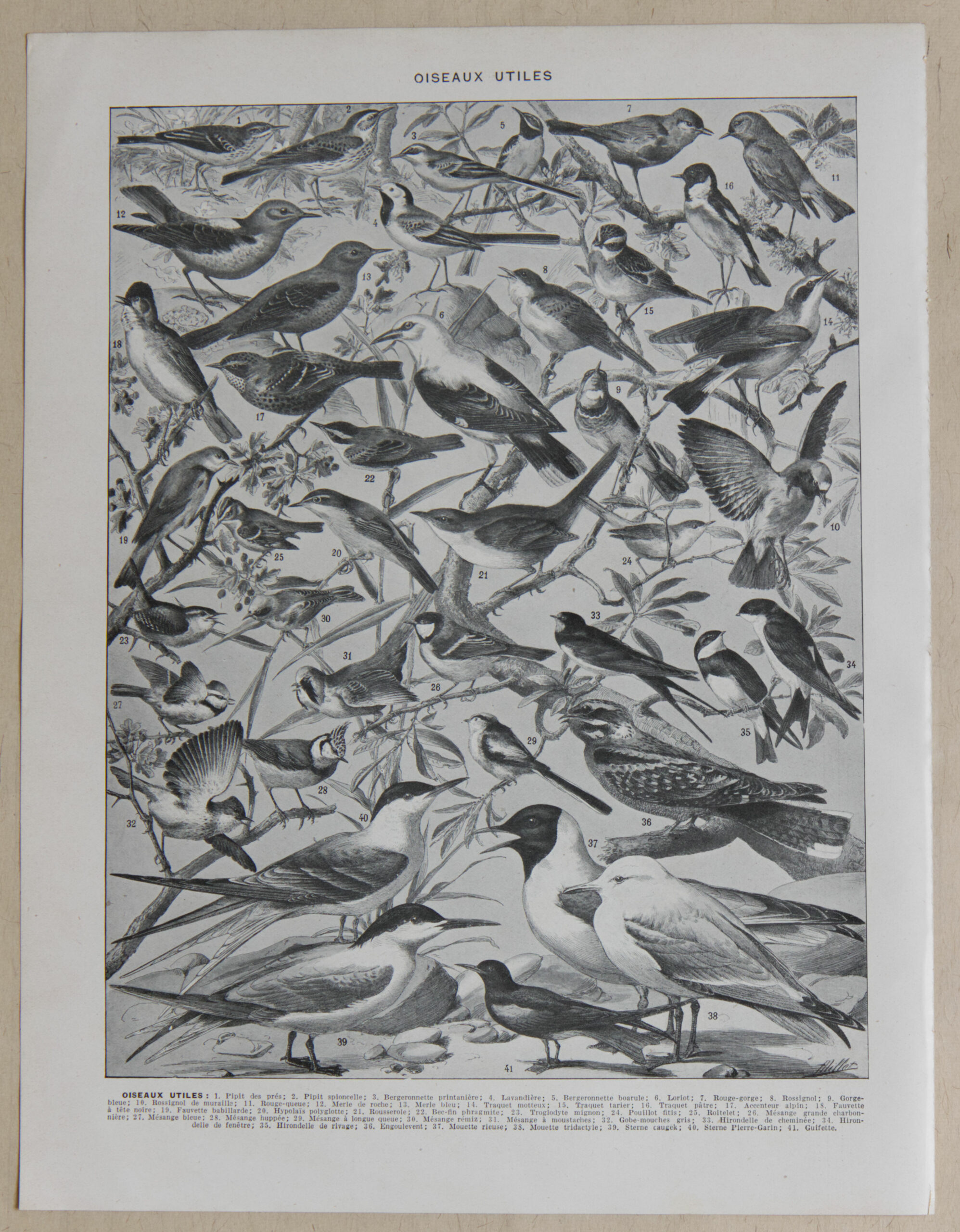 Découvrez une magnifique planche recto-verso illustrée originale de 1932. Au recto une planche en couleur dédiée aux oiseaux exotiques et oiseaux de paradis. Cette œuvre d’art présente une collection colorée et détaillée de diverses espèces d’oiseaux, idéale pour les amateurs d’ornithologie, les collectionneurs ou les passionnés de nature. Chaque oiseau est méticuleusement dessiné et coloré, offrant une vue réaliste et esthétique de leur apparence naturelle. Au verso: une planche en noir est blanc dédiée aux oiseaux utiles.